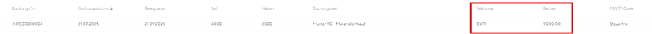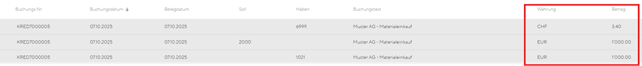 Im Buchungsjournal siehst du die Buchungen in den betreffenden Währungen:
