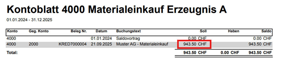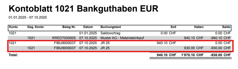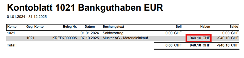 Auf dem Kontoblatt wird immer in CHF gebucht: