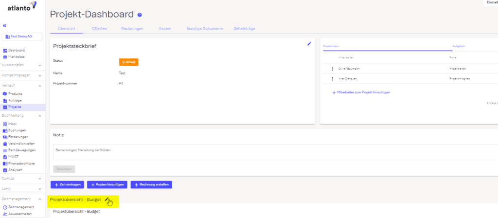 Wie erwähnt sind dies lediglich interne Stundensätze und werden im Balken “Entstandene Kosten” in der Projektübersicht (1. Seite) angezeigt.