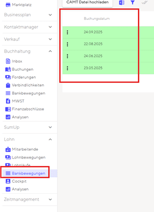Im ersten Fall werden die Lohnzahlungen automatisch unter Lohn – Bankbewegungen angezeigt. Atlanto verbindet die Zahlungen mit dem Lohnlauf und du kannst die Zahlung bestätigen. Der Status des Lohnlaufes ändert so automatisch auf «verbucht».