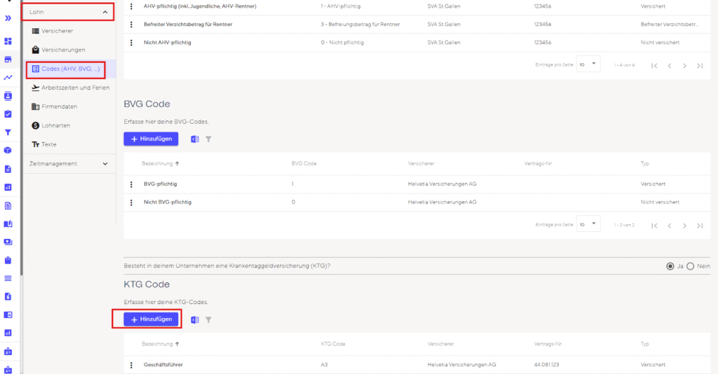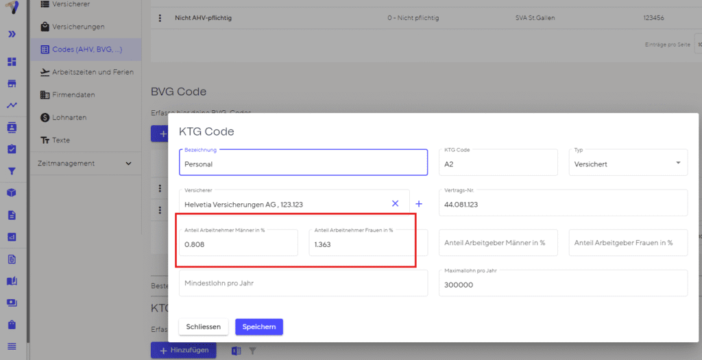 Du kannst auch einfach den bestehenden Code mit dem neuen Satz überschreiben. Dies hat zum Vorteil, dass du nicht bei jedem Mitarbeiter den neuen Code auswählen musst. Nachteil dieser Lösung ist, dass du weniger Übersicht über vergangene Zahlungen hast.