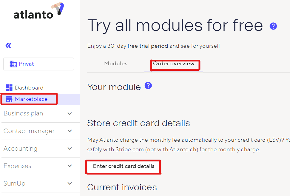 If you would like Atlanto fees to be automatically charged to your credit card, that is possible. Atlanto will always charge your card on the first day of the following month. Go to Marketplace – Order Overview and scroll down.