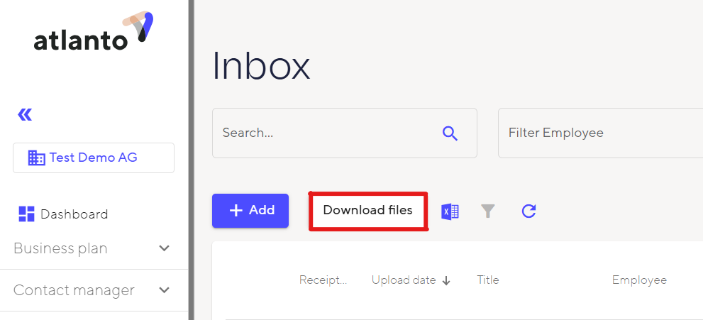 All receipts can be downloaded from the inbox at any time. Please note that only receipts from the inbox are included. If you add receipts manually to liabilities or bookings, you must download them all individually and manually. We therefore recommend that you always work using the inbox.