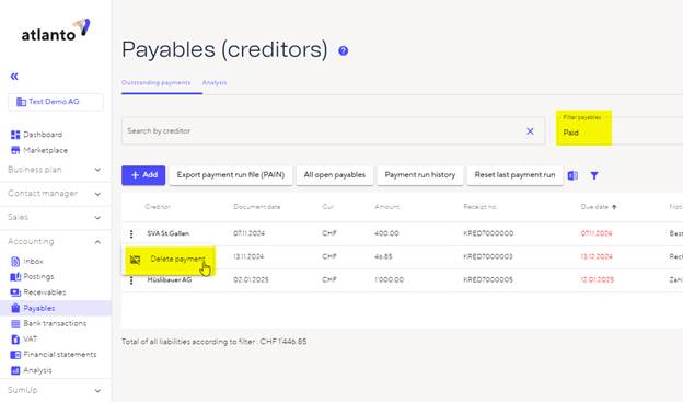–    Filter the ‘Paid’ items in the upper area under ‘Filter payables’
