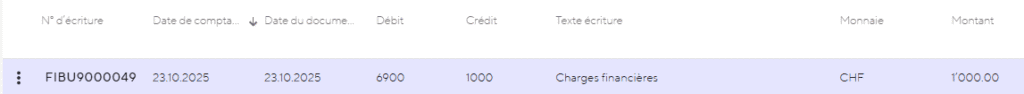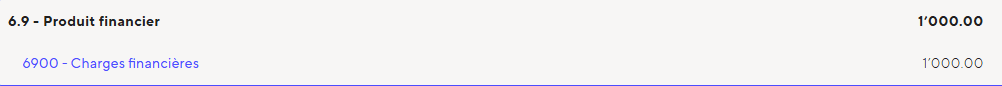 Dans notre exemple, la classe de comptes 69 est définie par défaut comme une charge, qu’il s’agisse d’une charge financière (débit) ou d’un produit financier (crédit).