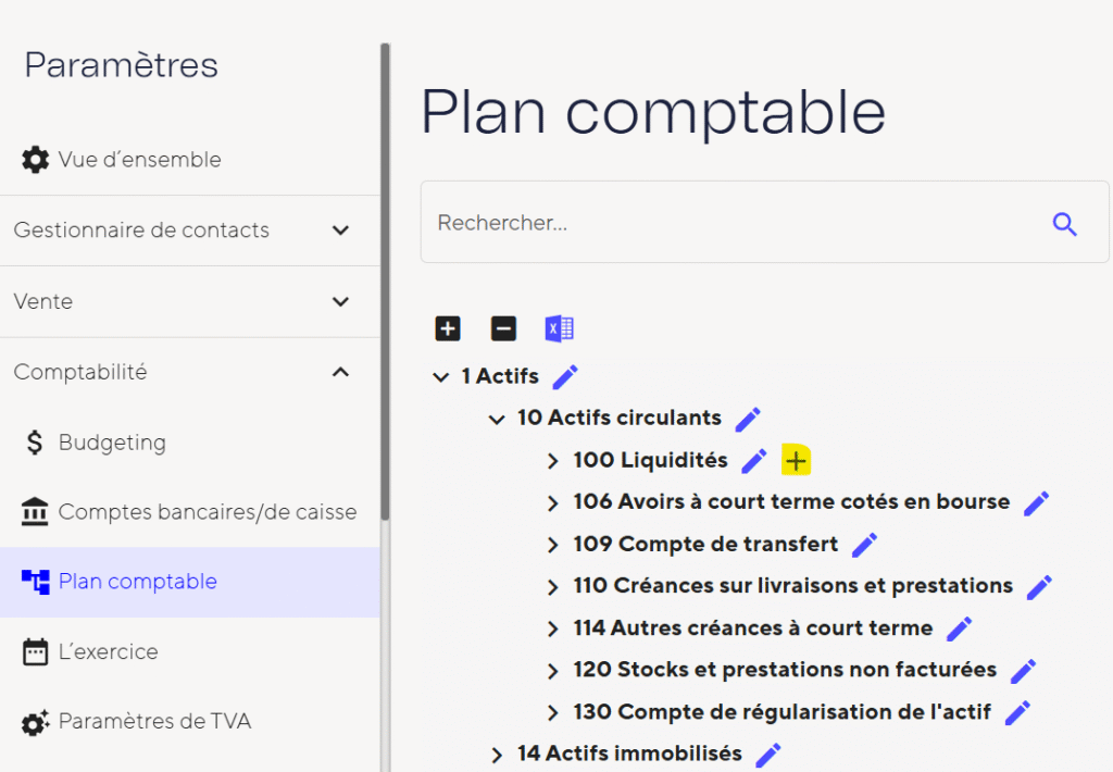 Supposons que tu aies un compte en CHF et un compte en EUR dans ton entreprise Revolut. Tu souhaites maintenant gérer ces comptes dans Atlanto. Ajoute d’abord deux nouveaux comptes dans le plan comptable ou désigne deux des comptes existants par ton compte Revolut. Veille à ce que le compte soit dans la bonne devise.